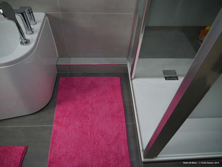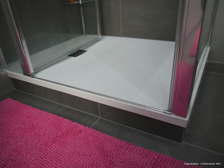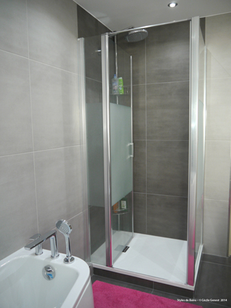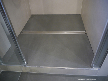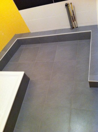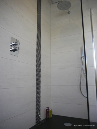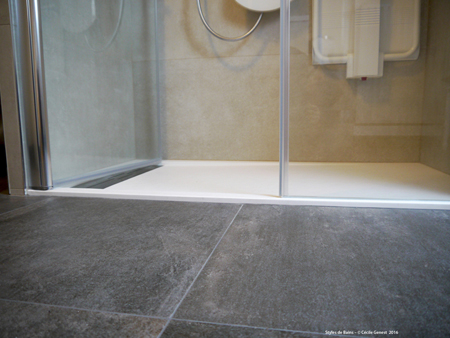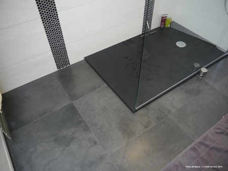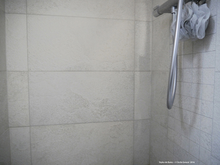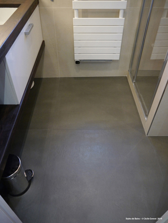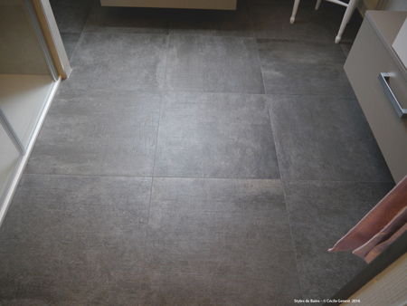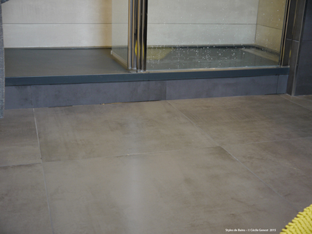 carrelage 90x90 sur sol et 120x120 aux murs en 2 nuances