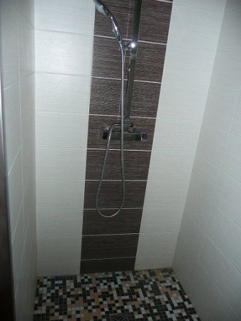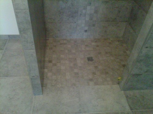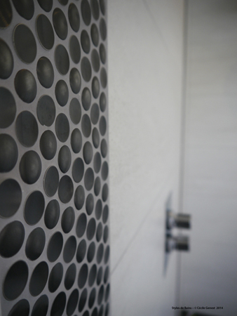 carrelage 120x120 aux murs et micro-mosaïque 1x1 (évacuation murale)