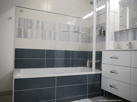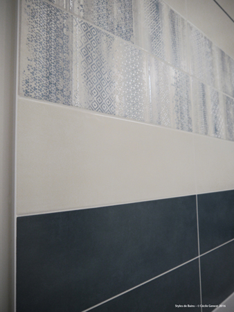 carrelage existant et faïence aux murs 20x60 beige et bleu pétrole + décors
