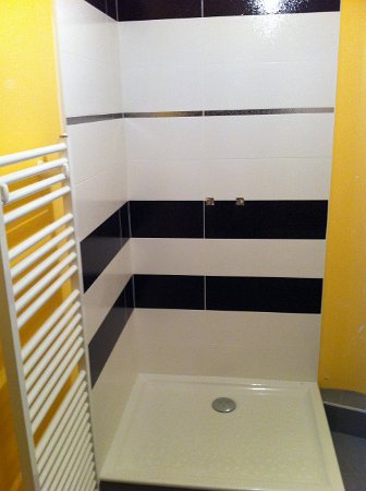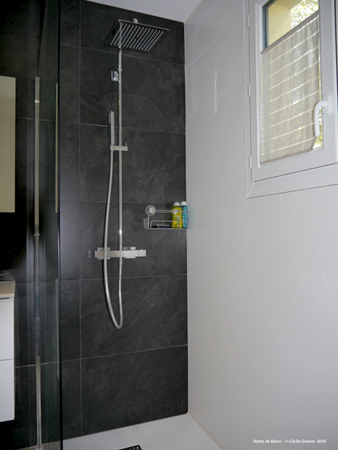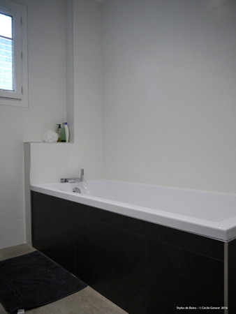 sol carrelage 60x60 et murs en faïence blanche 30x90 + noire 43x65