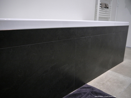 carrelage faible épaissseur 45x90 sur sol et murs, en 2 nuances