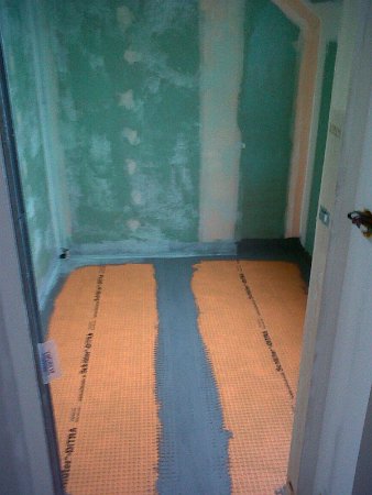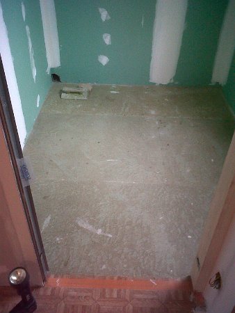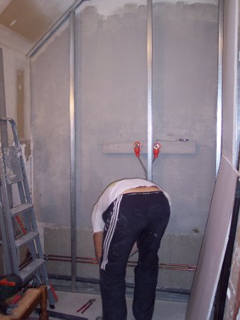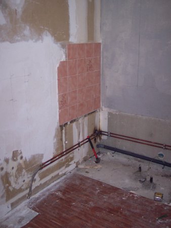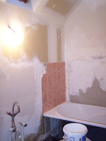 Pendant les travaux, création de la douche à la place de l'ancien lavabo