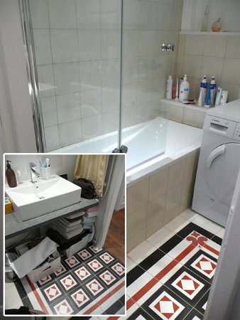 sol PVC à clipper + carrelage 30x60 aux murs et déclinaison mosaïque 5x5 et 2,5x2,5